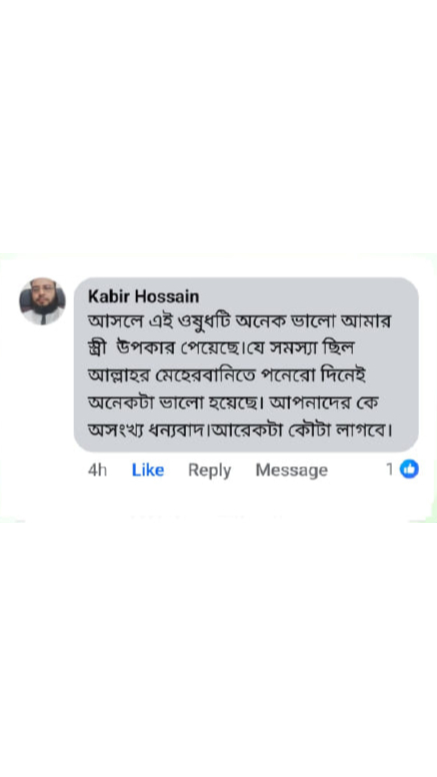 সম্পূর্ণ ন্যাচারাল উপাদান দ্বারা তৈরি তাই সেবনে কোন পার্শ্ব প্রতিক্রিয়া নেই